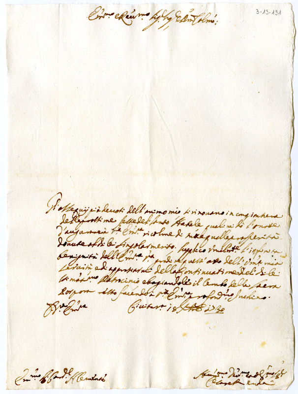 Lettera di Cesare Renda al cardinale Annibale Albani (1730 dicembre 18)