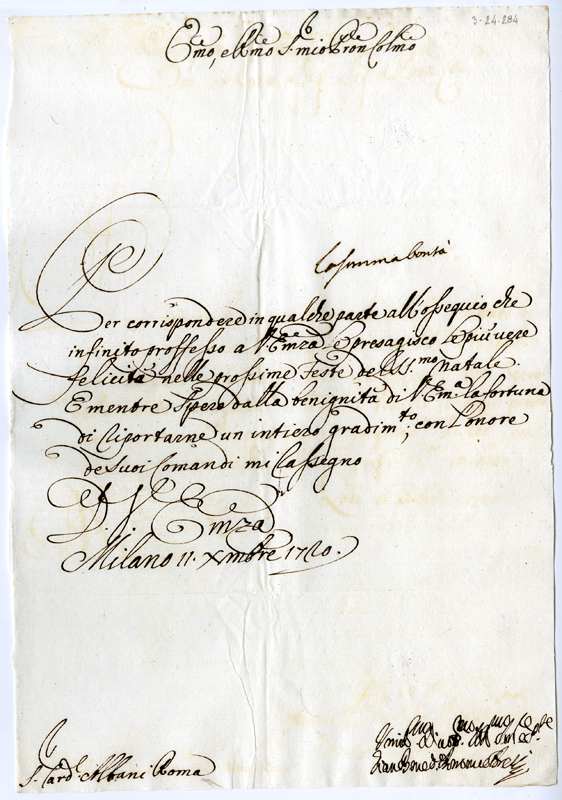 Lettera di Gian Benedetto Borromeo al cardinale Annibale Albani (1720 dicembre 11)