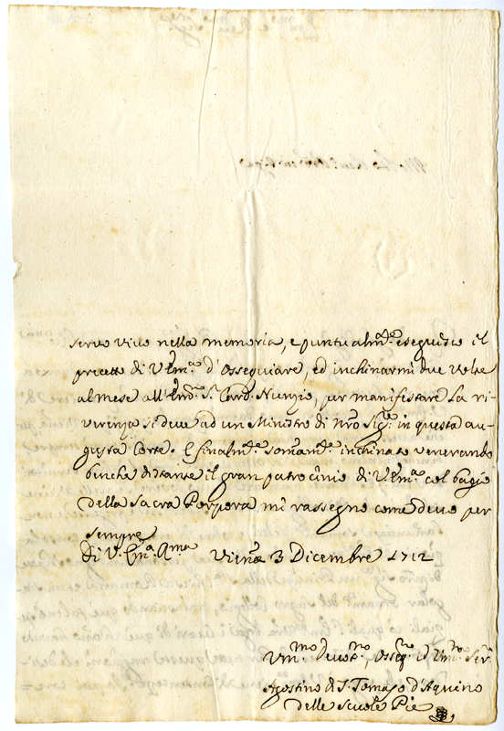 Lettera di Agostino di san Tommaso d'Aquino delle Scuole Pie al cardinale Annibale Albani (1712 dicembre 3)