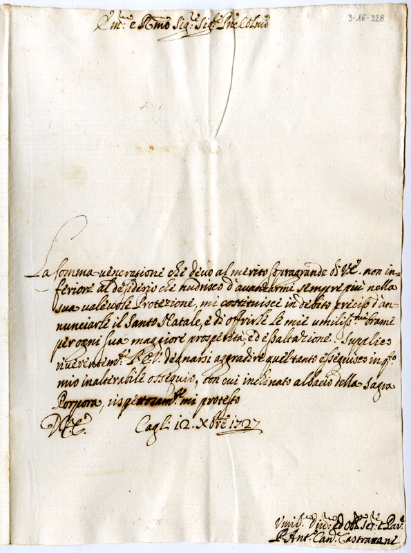 Lettera di Antonio Castracane al cardinale Annibale Albani (1727 dicembre 12)