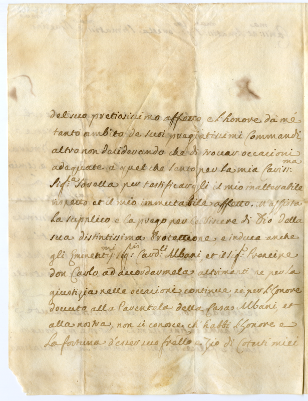 Lettera di Vittorio Ondedei a Carissima e Amatissima Signora Sorella Stimatissima e Riverentissima (1721 novembre 30)