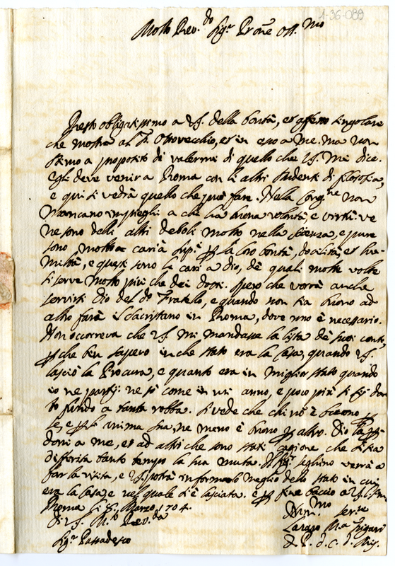 Lettera di Lazzaro Maria Figari a Giovanni Antonio Passadeschi (1704 marzo 8)