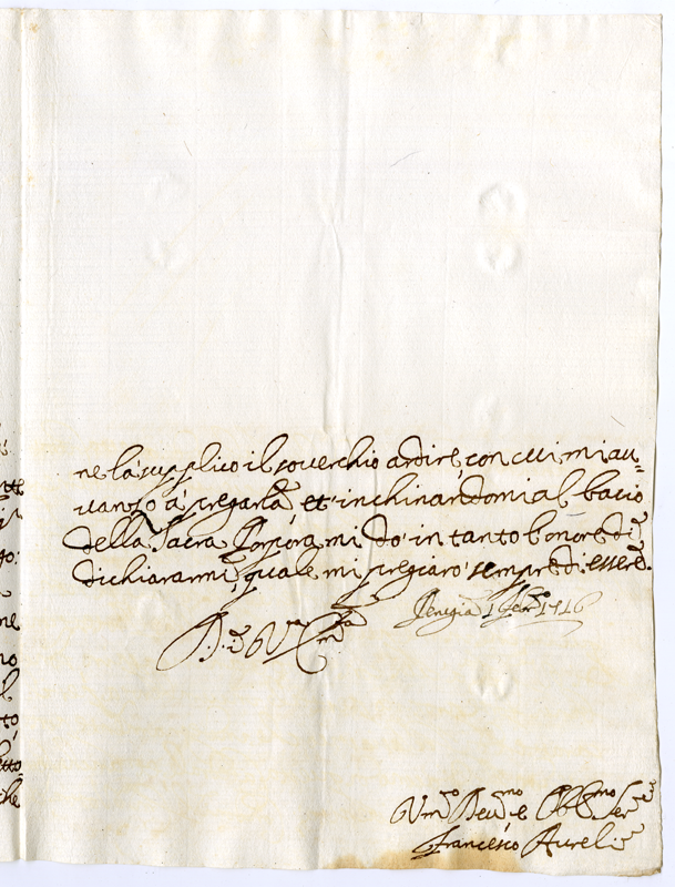 Lettera di Francesco Aureli al Cardinale Annibale Albani (1716 febbraio 1)