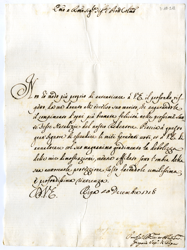 Lettera di Gregorio vescovo di Ripa ad Annibale Albani (1718 dicembre 10)