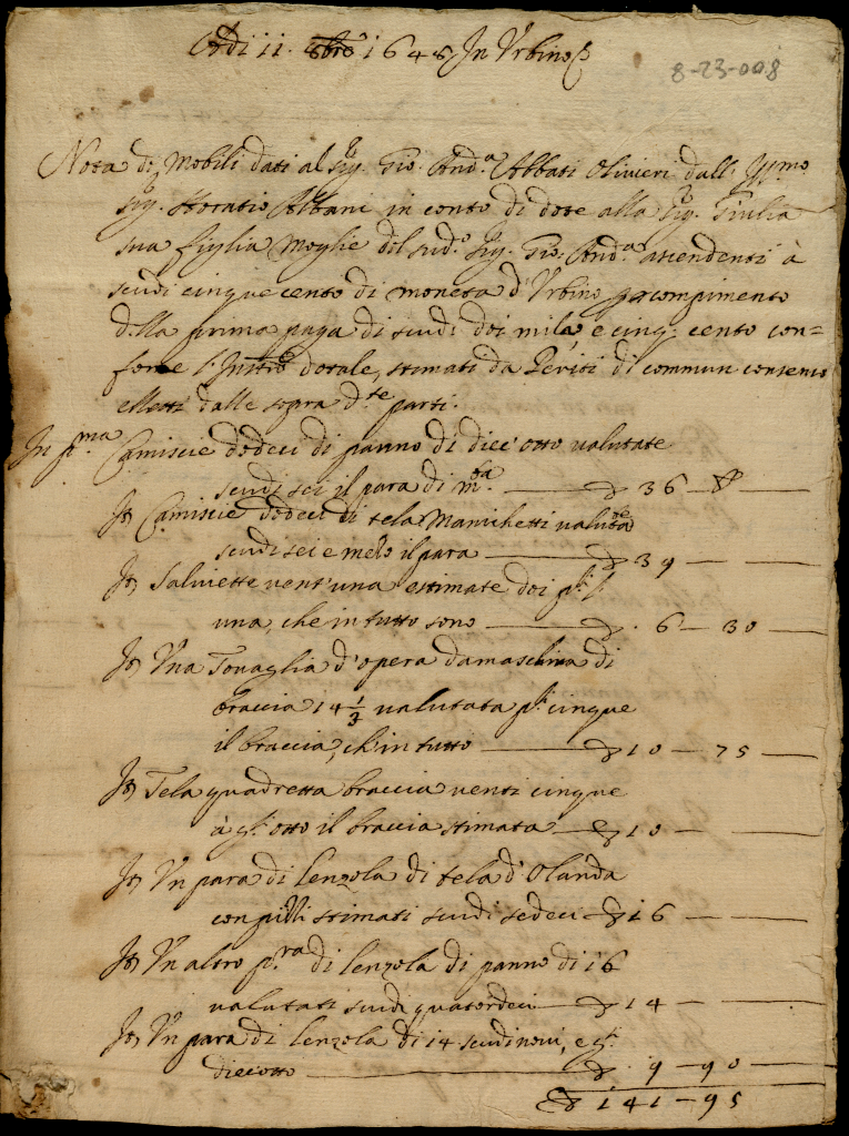 Scritture riguardanti la dote della signora Giulia Albani Olivieri
