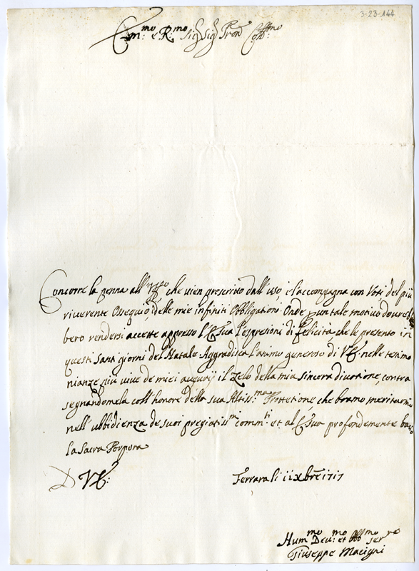 Lettera di Giuseppe Macigni al cardinale Annibale Albani (1717 dicembre 11)
