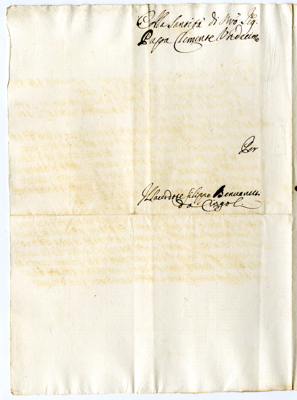 Lettera del sacerdote Filippo Benvenuti di Cingoli a papa Clemente XI (1700-1721)