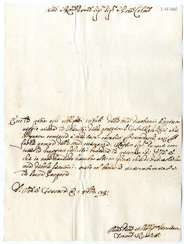 Lettera di Francesco Nicoletti al cardinale Annibale Albani (1731 dicembre 15)