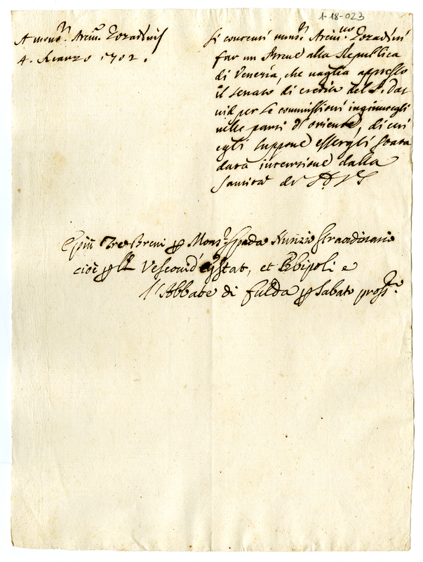 A monsignor arcivescovo Gozzadini (1702 marzo 4)