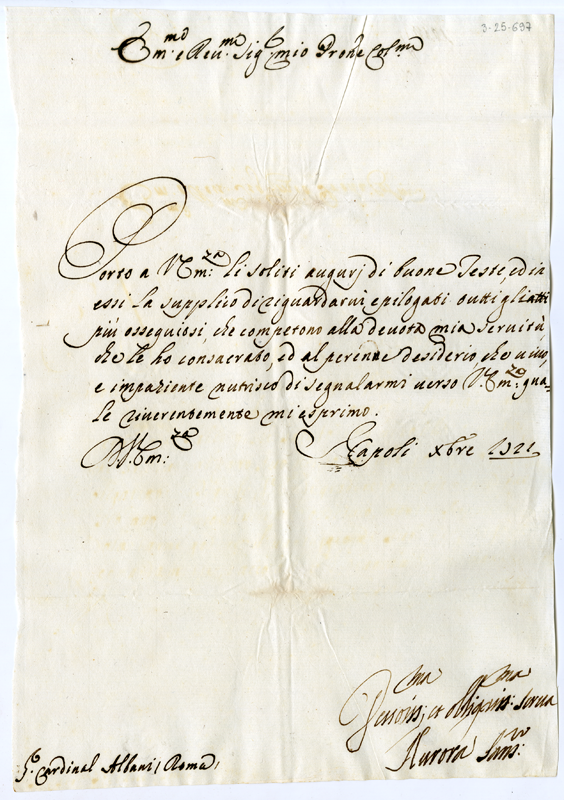 Lettera di Aurora Sansovino al cardinale Annibale Albani (1721 dicembre)