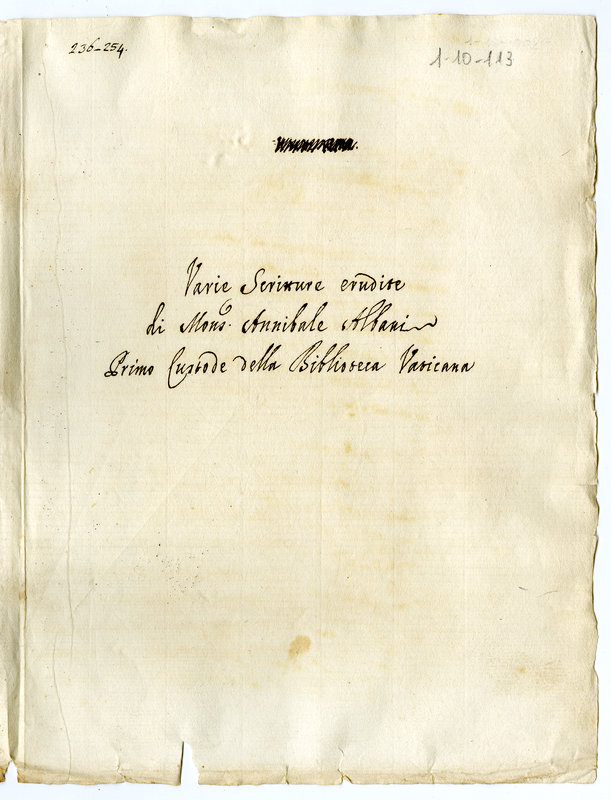 Varie scritture erudite di monsignor Annibale Albani primo custode della Biblioteca vaticana