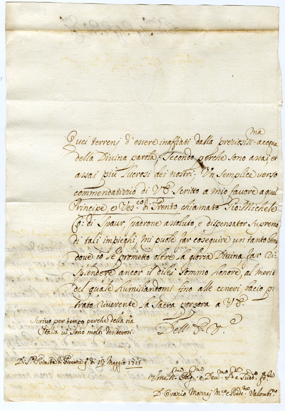 Lettera di Orazio Marrei al Cardinale Annibale Albani (1715 maggio 13)