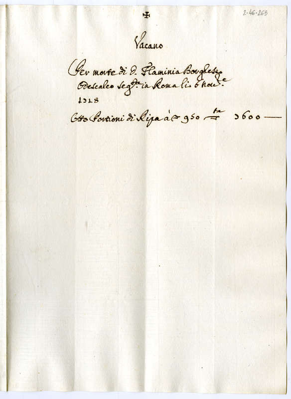 Benefici vacanti per morte di Flaminia Borghese (1718 novembre 6)