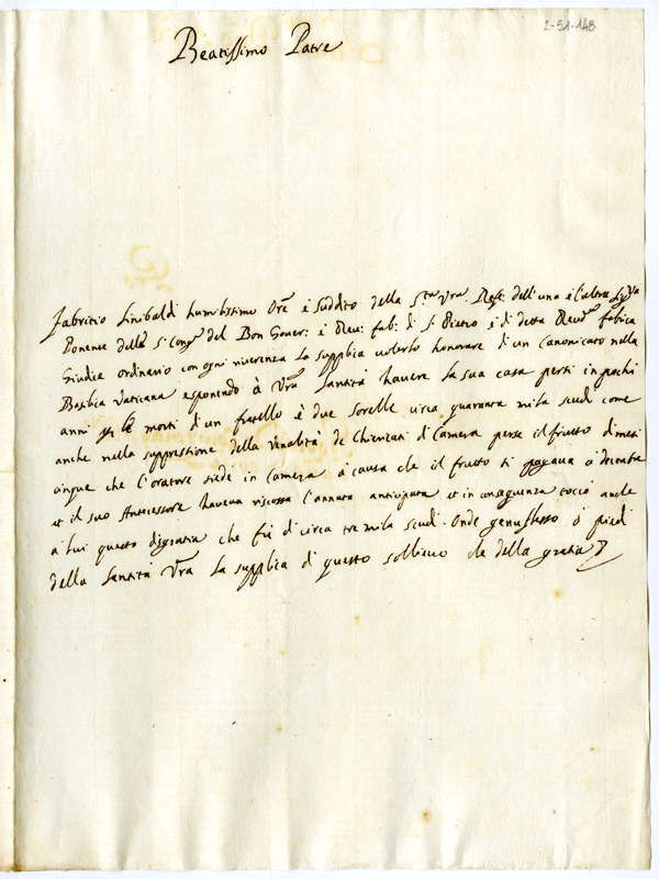 Lettera di Fabrizio Sinibaldi a papa Clemente XI (1700-1721)