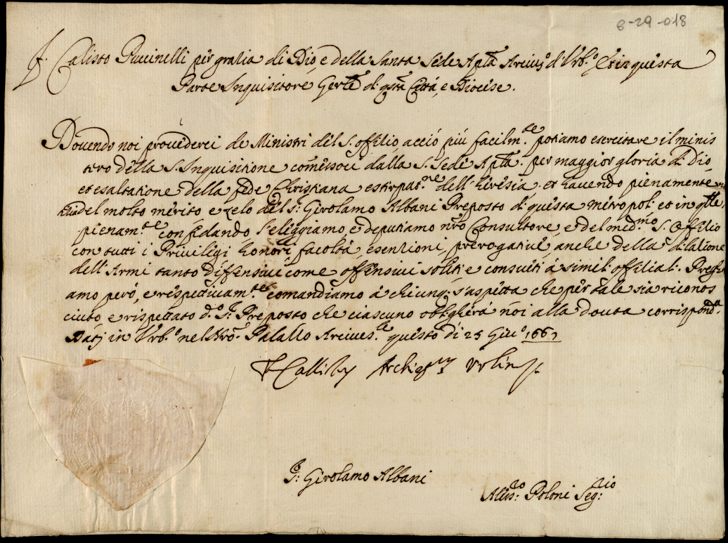 Figliolanze di religiosi, patenti diverse, famigliarità, licenze e prerogative a diversi dell'eccellentissima Casa Albani